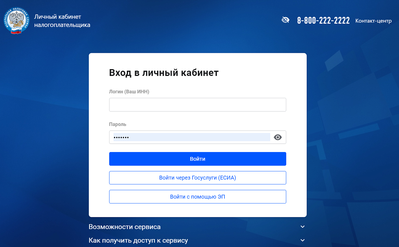 Если у налогоплательщика имеется подтвержденная учетная запись на портале «Госуслуг», для входа в Личный кабинет нужно: